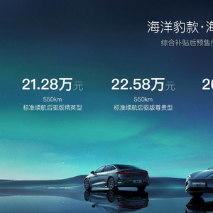 5月20日,比亚迪官宣旗下海豹车型开启预售,根据配置不同,新车预售价为21.28-28.98万元。作为海洋网旗下的又一款新车,海豹诞生于e平台3.0,并搭载了CTB、iTAC、后驱/四驱动力架构、前双叉臂+后五连杆底盘悬挂等多项黑科技,让其具备了爆款的潜质。