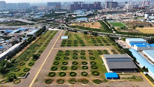 回洛仓现存遗址区虽然只是其中一部分,但也称得上雄伟壮观了。遗址区展示有复原后的回洛仓城南北城墙和内部的十字形道路,并用一个个绿篱圈标记了已探明但未发掘的仓窖所在位置。记者通过无人机从空中俯瞰,整个仓城呈长方形,仓窖成组分布,整齐排列,蔚为壮观。