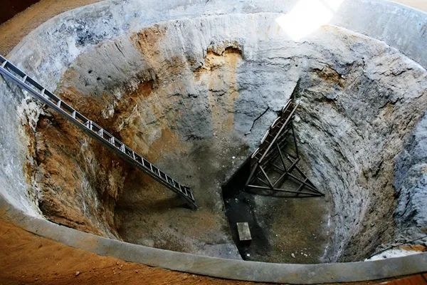 据介绍,回洛仓始建于隋炀帝大业年间,整个仓城东西长1000米、南北宽355米,总面积相当于50个标准足球场大小。仓城内仓窖东西成行、南北成列,约有700座,气势恢宏。回洛仓内每个仓窖的大小基本一致,呈口大底小圆缸型,窖口直径约10米,深约10米,每个仓窖可储存约50万斤粮食,总储粮大约3.55亿斤。