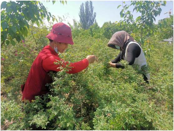 在苦水镇苦水街村,放眼望去,玫瑰花田一眼看不到头,空气中弥漫着浓郁的玫瑰花香,花农正在花丛中采摘鲜花,为这收获的季节而忙碌。苦水街村全村有600多户农户从事着苦水玫瑰种植,村上通过举办种植技术培训,农户在技术人员的指导下科学修剪、施肥,实现了产值和产量双赢。苦水玫瑰达到盛产期后,亩均种植效益可达4800元,亩均综合效益可达8000元。