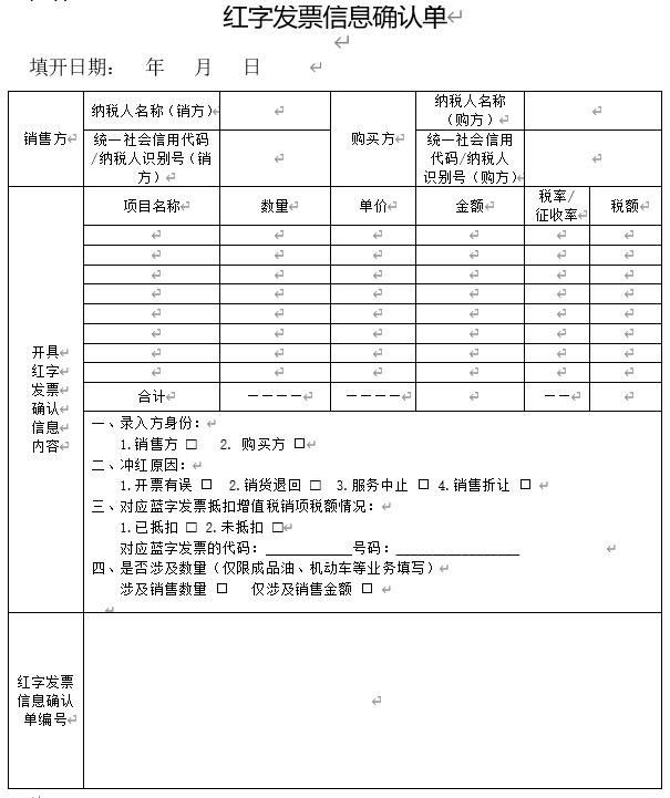 (一)受票方已进行用途确认或入账确认的,开票方或受票方可以填开并上传《红字发票信息确认单》(以下简称《确认单》,见附件2),经对方确认后,开票方全额或部分开具红字全电发票或红字纸质发票。