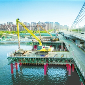 沿津静市域(郊)铁路向南行驶,来到独流减河特大桥的施工现场。作为首开段重点控制性工程之一,独流减河特大桥桥梁全长1103米,跨静海、西青两区。大桥由3联连续箱梁桥组成,设计连续箱梁单体最大跨度长达150米,是天津市轨道交通系统垮度最大的跨河铁路悬浇连续梁。市域铁路公司安全工程师杨红磊说:“预计明年8月初,将完成独流减河特大桥的全部施工任务。”