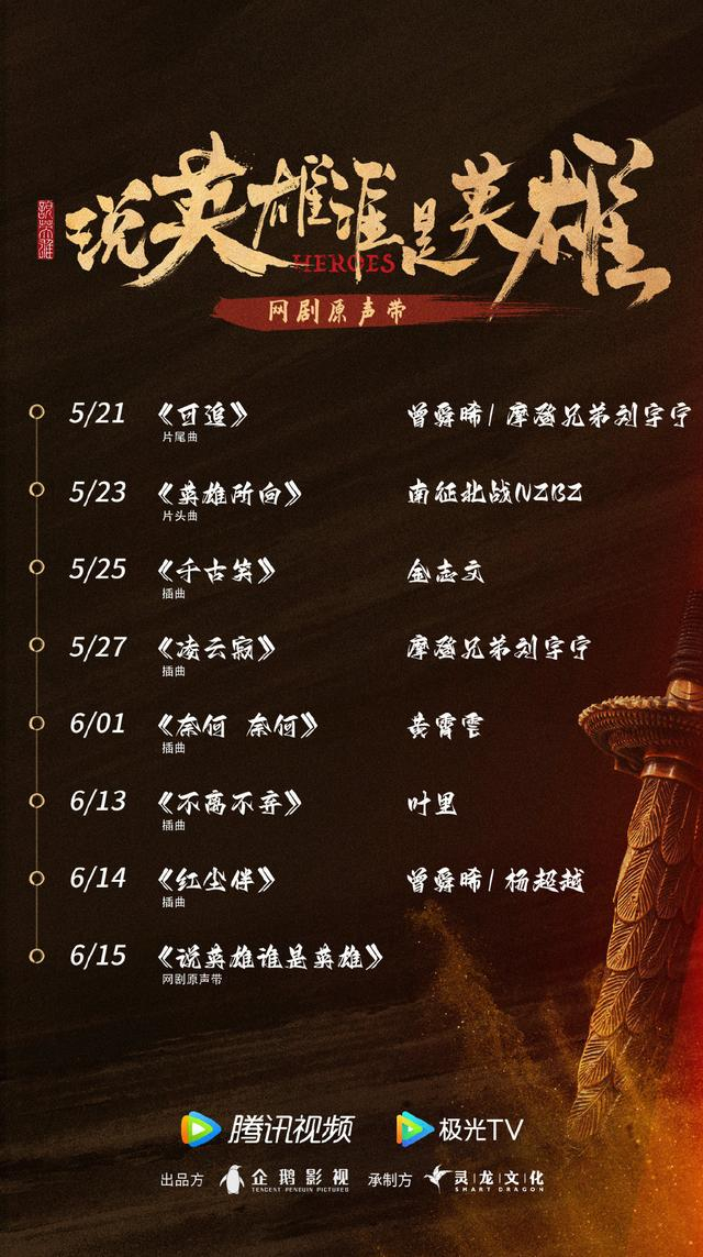 《说英雄谁是英雄》发布原声带阵容,曾舜晞、刘宇宁合作片尾曲