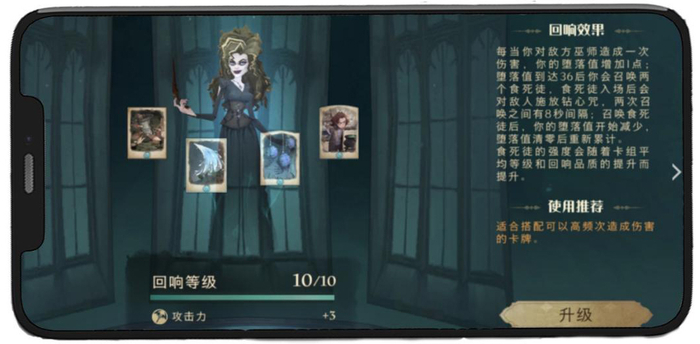另一方面,《哈利·波特》系列的叙事主线是主角哈利从麻瓜世界步入魔法世界去寻找身份的历险旅程,众多角色的成长和作者的人文关怀一直贯穿于这一旅程中。但是,由于《魔法觉醒》开发者太过在意玩法的趣味性,导致这部游戏与原作世界观的背离。例如,在《哈利·波特》系列原著中,贝拉·莱斯特兰奇将伏地魔的党羽食死徒传送到霍格沃茨,对全校师生进行了屠杀。同时,魔法部禁止巫师使用三大“不可饶恕咒”(The Unforgivable Curses),使用者会被判处阿兹卡班终身监禁。然而,《魔法觉醒》中的贝拉属于回响系统,是一位持续爆发快节奏打法的强势角色,其技能为攻击敌方巫师频次累积到36次后,玩家能够召唤出两只食死徒释放钻心咒。在这种情况下,无论对战的巫师选择何种卡组,只要玩家不能及时解决掉一群怪兽,基本上就宣告了本场战斗告负。就PvP模式来说,贝拉属于高强度的回响卡牌选择,因此,在实际游戏过程中,有不少玩家为了胜利而追求强大的黑魔法。这种鼓励和引导玩家使用黑魔法的游戏设计和原作价值观是完全相悖的。