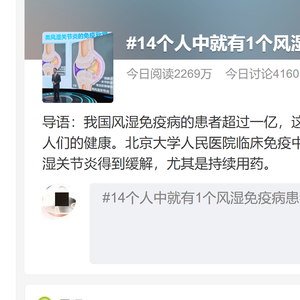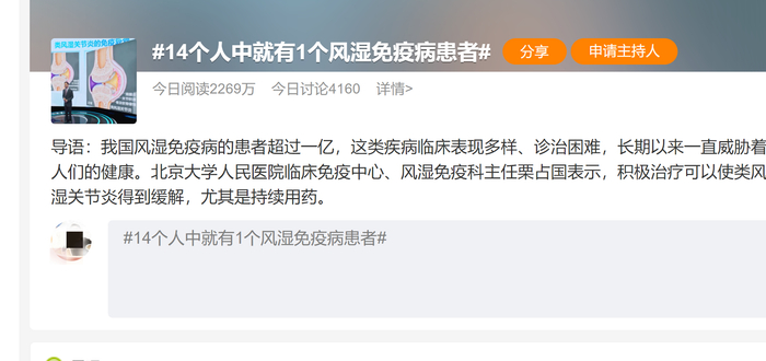 话题“14个人中就有1个风湿免疫病患者”上了热搜