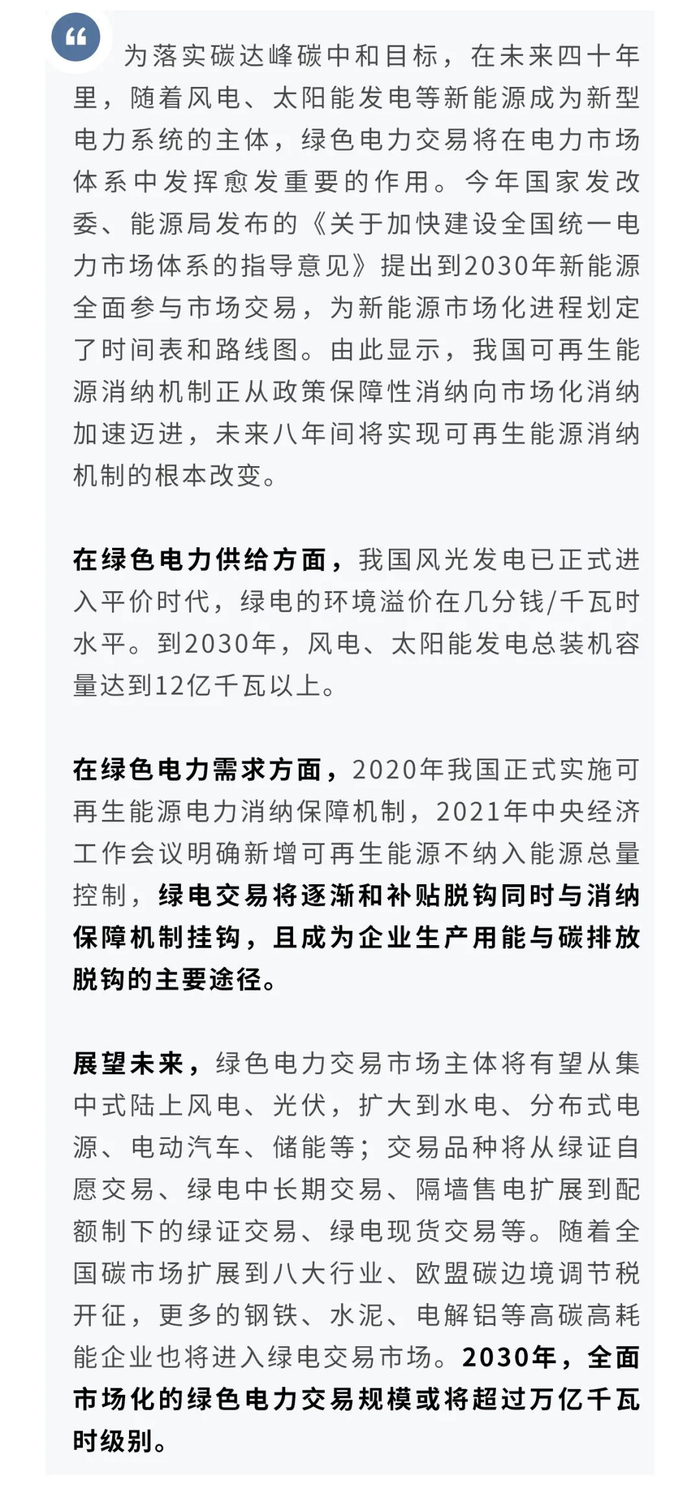 【今日推荐】2030年绿电市场化交易将达万亿千瓦时