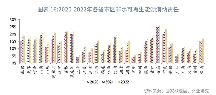2020年,“配额制”以“可再生能源电力消纳保障机制”的形式正式落地,能源主管部门每年初滚动发布各省权重,同时印发当年和次年消纳责任权重,当年权重为约束性指标,各省按此进行考核评估。根据“双碳”目标的要求,2060年的非化石能源消费比重将达到80%,消纳责任权重目标将不断上升。