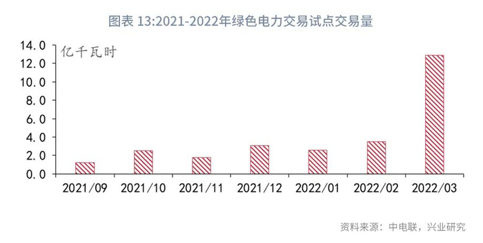 根据中电联全国电力市场交易的数据统计,2021年度全国各电力交易市场绿色电力交易量达6.3亿千瓦时,仅占当年市场交易电量的0.017%,2022年一季度绿色电力交易量已经达到21.7亿千瓦时,粗略估计2022年全年绿色电力交易量将接近百亿千瓦时。