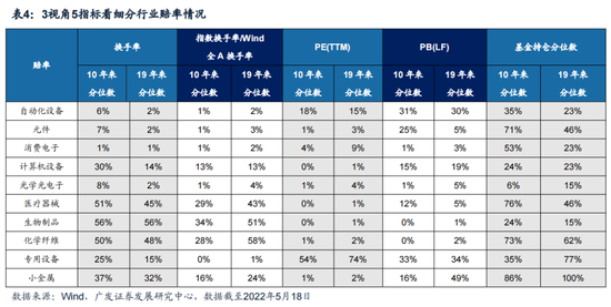 (2)赔率视角看投资机会。3视角5指标判断申万二级行业中小盘成长行业的赔率情况。我们从市场拥挤度、估值、基金持仓3个视角出发对细分行业的赔率进行分析。具体指标上,我们通过换手率历史分位数、换手率/A股换手率历史分位数2个指标表征市场拥挤度;以PE(TTM)和PB(LF)的历史分位数2个指标表征市场估值;以基金持仓占比历史分位数表征基金持仓。