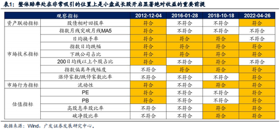 根据“否极泰来”方法论,从资产联动指标、技术指标、市场行为指标和估值指标四个角度的市场静态特征来看,截至4月26日“否极泰来”方法论的13大指标中有10大指标指向小盘价值已经处于赔率极为吸引的位置,我们判断:小盘价值股的赔率在2022年4月26日已经具备明显的底部特征。
