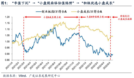 自21年3月至今,我们对A股小盘股的观点经历了三个阶段:21年3月提出“市值下沉”→21年12月开始“小盘股面临估值陷阱”→当前强调“积极优选”。(1)我们在21.3.3《微观结构恶化——历史与影响》提出历史上历次微观结构调整下市场均迎来小盘占优,21.3.4《拾级而下,“市值下沉”如何布局?》提出“市值下沉”将具备持续性;(2)我们自21.11.17《逢低布局大盘价值》开始关注布局大盘价值板块,21.12.5年度策略展望中提出“从盈利环境和金融条件来看,小盘股将面临“估值陷阱”;(3)而我们在近期提示小盘成长的决定性要素有明显改善,建议积极优选布局——22.5.15《不卑不亢,价值先行》中提到“市场将从过去五个月的泥沙俱下转向具备较丰富结构性机会。国内政策经济环境逐步改善+美联储坚决紧组合下我们建议首要关注价值股,其次关注受海外影响较小且交易结构不拥挤、前期超跌小盘成长股(500亿市值以下)”,22.5.18《小盘成长股的四条线索》中强调“成长反弹的两个条件阶段性触发,关注小盘成长股的4条投资线索”。
