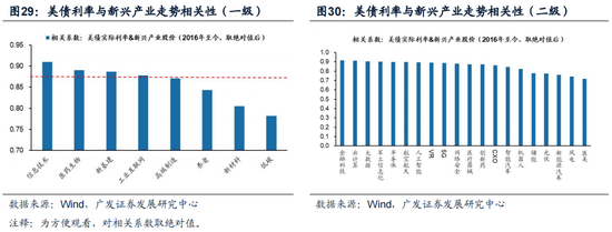 线索一:美债利率阶段性下行受益(医药/新基建/新材料)。(1)若美债实际利率延续边际回落趋势,医药生物/新基建/新材料领域或最为受益,从历史上看其对于利率回落最为敏感;(2)美债利率若重回3月中旬以来上行趋势,新基建/高端制造/养老领域或受损最小。从历史上其对于美债利率上行的敏感性最低。