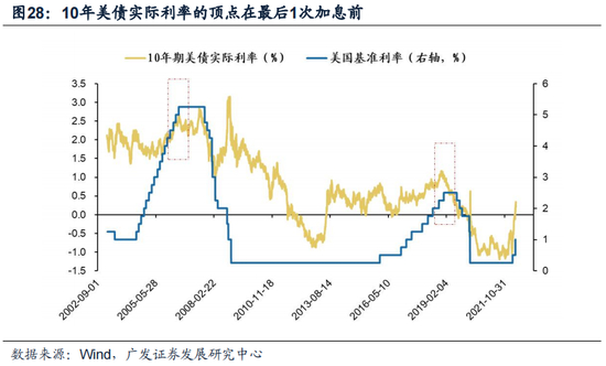当前,部分投资者认为美债利率已经见顶,但我们维持美债利率仍处于上行通道的判断,且实际利率上行的空间更大。我们自21年12月5日年度策略后持续强调“美联储坚决紧”是22年两大核心预期差之一,而之后美联储的操作持续超出市场预期,但即便如此自去年12月以来每个月都有投资者认为美债已经见顶。而当前又有部分投资者判断美债利率已经见顶:我们在3.20春季策略中强调,加息周期中经济和通胀的下行不必然带来美债利率的回落,在货币政策剧烈变化的阶段,利率走势经常出现与经济环境变化的阶段性背离。我们在5.5美联储议息会议点评中强调,22年5-9月是美联储货币政策实质紧缩最剧烈的阶段,美债利率仍处于上行通道,当前是短期缓和的窗口(8月或是阶段性缓和的下个窗口)。综合经济、通胀、政策环境来看,当前更强劲的就业市场和薪资增速支撑内需、更高的通胀水平、更剧烈的货币政策收紧都将促使本轮美债利率上行至高于2018年峰值水平(10年期名义利率3.24%、10年期实际利率1.17%),未来实际利率上行的压力更大。