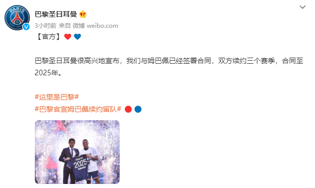 在续约官方视频中,姆巴佩也谈到了他的决定:“我选择与巴黎续约,我当然很高兴。俱乐部为我提供了所需要的一切,我相信自己可以在这里继续成长。我也很高兴能继续在法国踢球,这里是我出生、长大和成名的地方。我一直都说,巴黎是我的家。”