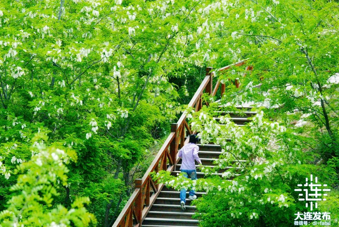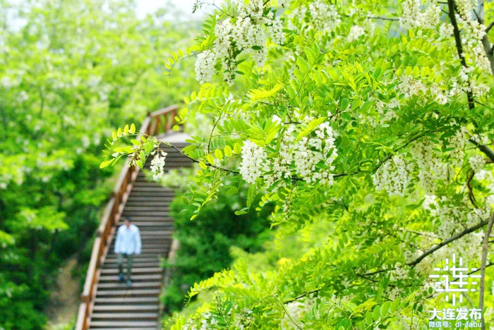 位于普兰店区安波街道杨屯社区的南外环路,在这一季节,已经成为了一条槐香弥漫的花路,从鸿缘山庄北门起,槐花路段总长八公里左右,是适合徒步爱好者采风、休闲的好去处。