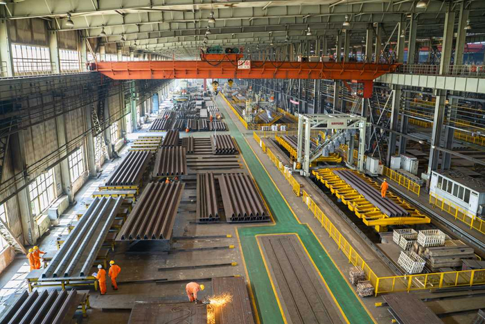 中铁山桥钢箱梁板单元生产线,从下料、组装、焊接,实现全过程自动化、信息化、智能化,是目前世界上最先进的桥梁钢结构生产系统之一。刘伟超摄