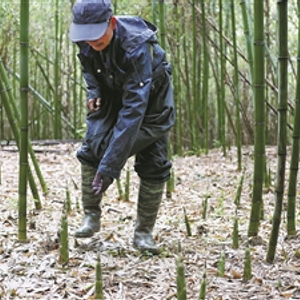 昨日一大早,奉化尚田街道许家村的村民在霏霏细雨中上山挖笋,只为制作最为鲜嫩的“鳗竹笋”羊尾笋干。