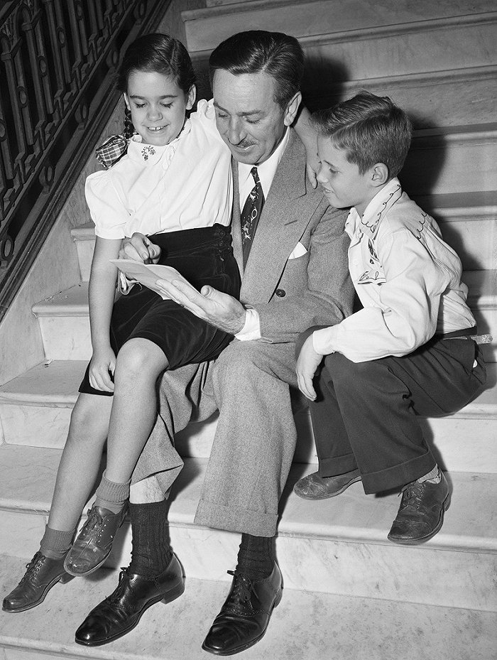 迪士尼创作出了世界上第一部有声动画片《威利号汽船》(1928年)、第一部彩色动画片《花与树》(1932年)和第一部长篇动画片《白雪公主与七个小矮人》(1937年)。《白雪公主》开启了迪士尼非同寻常的创造力,1940年《木偶奇遇记》和《幻想曲》诞生,随后还有1941年的《小飞象》和1942年的《小鹿斑比》——迪士尼的神话将永远建立在这些基础之上。