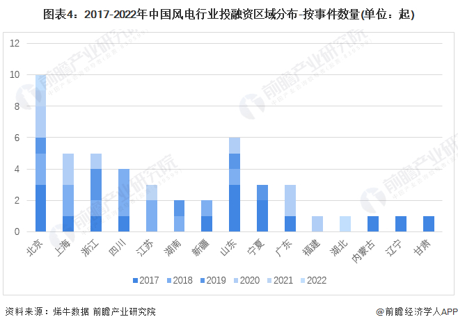 3、风电行业投融资集中在北京、山东、浙江、上海