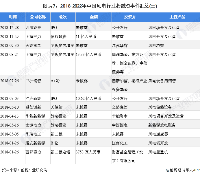 2018年-2022年我国风电行业的主要投融资事件如下: