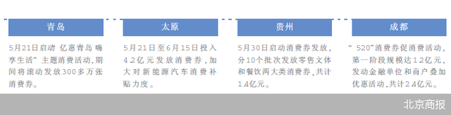 与此同时,包括太原、贵州、三亚等地也均展开了消费券发放活动。如果将时间线拉长,有统计数据显示,仅今年前4个月,浙江、江西、四川等20个省市就先后发放了总额超过34亿元的消费券。