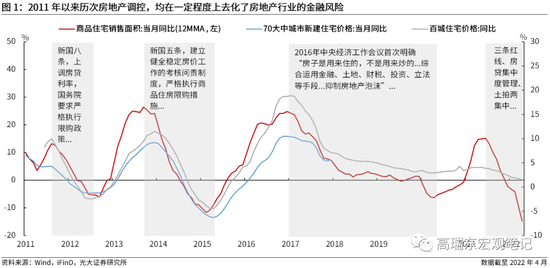 2020年8月,央行等部委联合出台了重点房地产企业资金监测和融资管理规则(三线四档),年底又推出了对商业银行信贷占比做出明确规定的“房贷集中度管理”,大幅提升了房地产行业的融资难度,致使房地产行业持续多年的“高负债、高杠杆、高周转”模式受到挑战。同时,监管机构还针对居民端,开启了严厉打击经营贷违规入市,以及各地开始陆续收紧限购限贷措施。随着该轮房地产调控的迅速升温,房地产行业的各项指标开始降温,房地产行业前期所积累的金融风险明显去化。