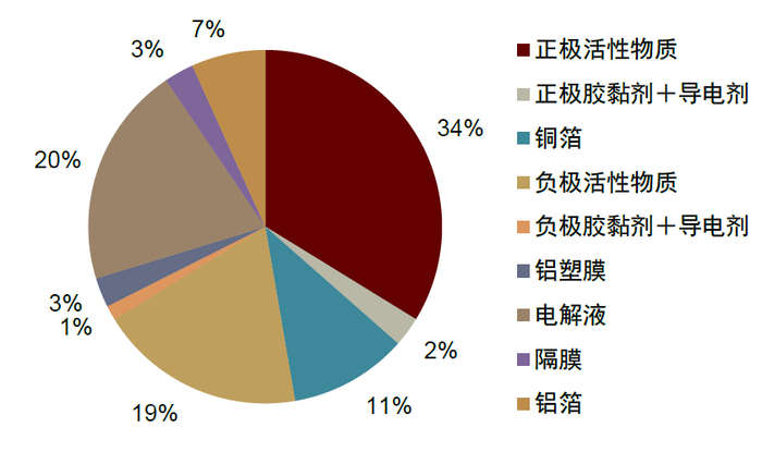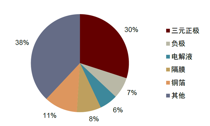 图表2:铜箔占动力电池成本比重约为11%