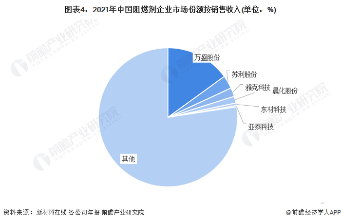 注:各公司市场份额为前瞻根据各公司阻燃剂业务营收与新材料在线公布的整体市场销售收入测算所得,仅供参考。