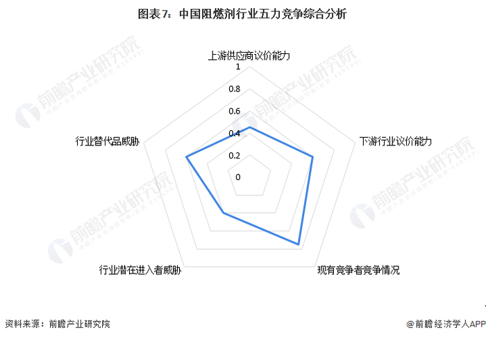 从五力竞争模型角度分析,由于阻燃剂产品类型多样,各企业产品布局差异较大,行业内中小企业较多,且主要集中在中低端产品市场,整体来看,行业现有竞争者竞争程度较为激烈;国内阻燃剂行业大部分上游产品处于供给较为过剩状态,因此阻燃剂上游原材料供应商的议价较差;当前由于我国阻燃剂产品类型主要集中在中低端,产品同质化较为严重,因此我国阻燃剂行业下游有一定的议价能力;从我国阻燃剂吸引力和进入壁垒来看,我国阻燃剂行业潜在进入者威胁一般;阻燃剂作为一种环保新材料,行业外部产品替代威胁较小,但不同阻燃剂产品间,或同类产品间存在一定的升级替代风险。
