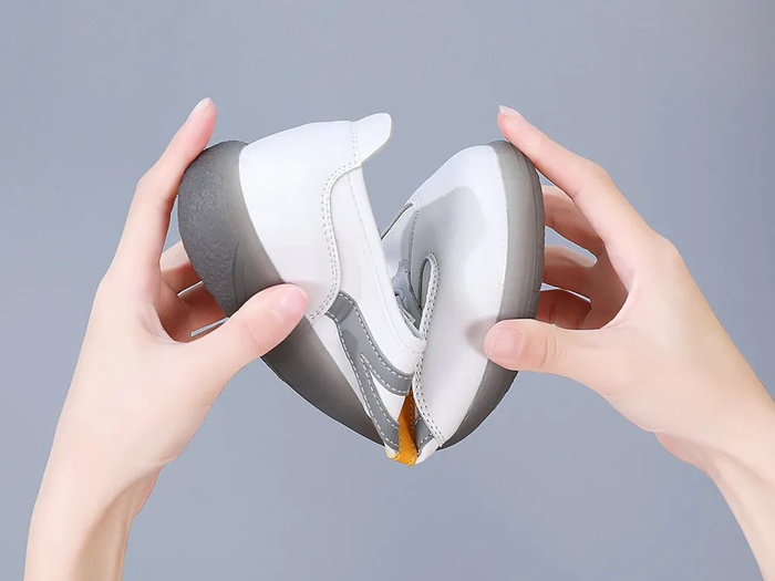 鞋底是PVC软底,轻盈弹软,可以轻松弯折,走起来贴合双脚的运动趋势,暴走不易累。