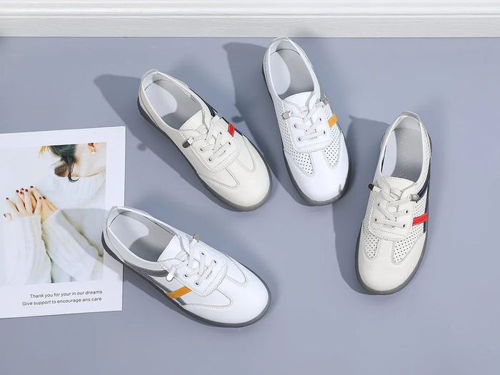 低帮平底的款式,偏运动休闲风,好穿不累脚,好搭不挑人。