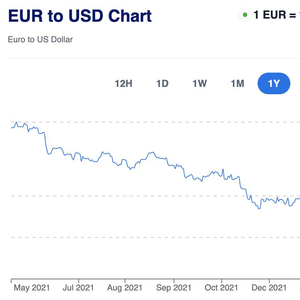 截至5月20日,在经历了连续一年的跌势之后,欧元兑美元汇率进一步跌至1欧元兑1.05美元。5月18日的汇率最低时一度达到1.035。