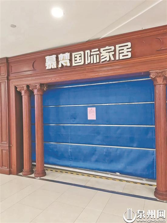 20日,记者来到晋江宝龙广场二楼看到,原本的“一统国际家居”门店已换成“慕梵国际家居”,但店门紧闭,门口贴着一张宝龙广场5月16日的通知:“现我司发现租赁商户一统国际家居店铺存在经营异常风险,请有在该店铺消费的各位顾客朋友注意交易风险,以免消费者权益被侵犯。”