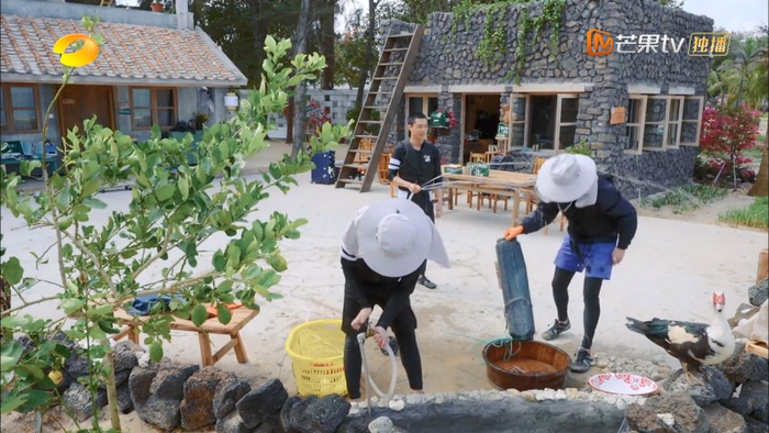 第一条叙事线,是相对真实的躬耕生活。在此前几季节目中,无论是北京郊区密云花园村,浙江杭州桐庐合岭村,湘西古丈县默戎镇翁草村,云南西双版纳勐罕镇曼远村,还是湖南常德桃花源白麟洲村,虽然地儿不同,但常驻嘉宾都得自己动手,丰衣足食,顺便招待远道而来的客人(飞行嘉宾)。所以往季节目里,嘉宾们犁过地、插过秧、挖过笋、捕过鱼、打过糍粑,甚至连炉灶都是自个起的。