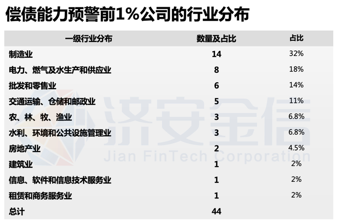 三、制造业和电力燃气水两大行业占偿债预警榜半壁江山