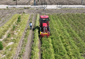 而在首次种植大蒜的徐行爱辉粮食蔬果合作社,农户也迎来收获的喜悦。5月21日,一台农机正缓缓沿着地垄向前驶去,每一条地垄长约百米,种有4排大蒜。合作社负责人丁惠德介绍,为提升效率,从播种到收割再到分拣,几乎全程机械化,50亩大蒜2天就能全部收割完毕。