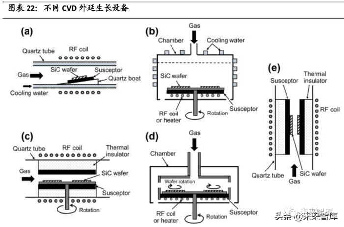 LPE 法通过在高温纯硅溶液中将碳溶解其中,从过饱和液中析出碳化硅晶体。LPE 适用于制备高质量大尺寸碳化硅衬底,但是生长速度极其缓慢,材料要求也 高,应用厂家有住友金属。