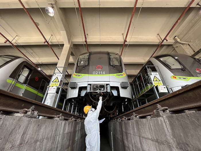 停运在车库的每列列车,都有近50个指标需要一一核验。车辆检修人员对列车久停之后产生的小毛小病,开展针对性检验,包括车门系统、空调系统以及广播系统等功能性测试。在查看车况时,检修人员还要对列车激活通电,运作空压机。此外,所有列车出库前,都会进行一次全面消杀。