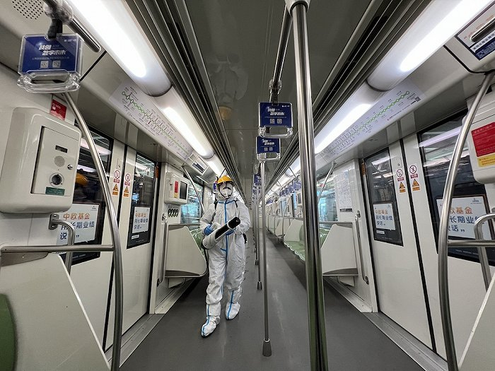 重启运行前,第一阶段恢复运行线路的公交首末站、地铁站、车辆等提前进行了全面预防性消毒。按照规定,恢复运行初期,地铁部门还将对乘客频繁接触的地铁站台、安检设备、自助售票机,公交首末站候车座椅、无障碍设施设备等,每4小时进行一次消毒。