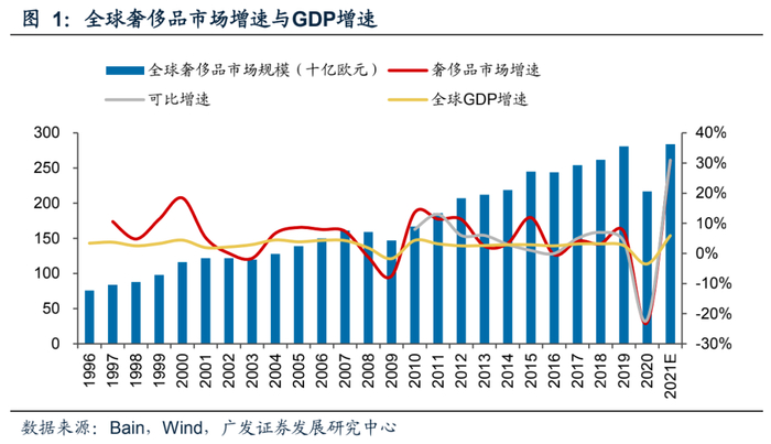 1.1 2021年全球奢侈品市场强势反弹,经济复苏提振消费需求