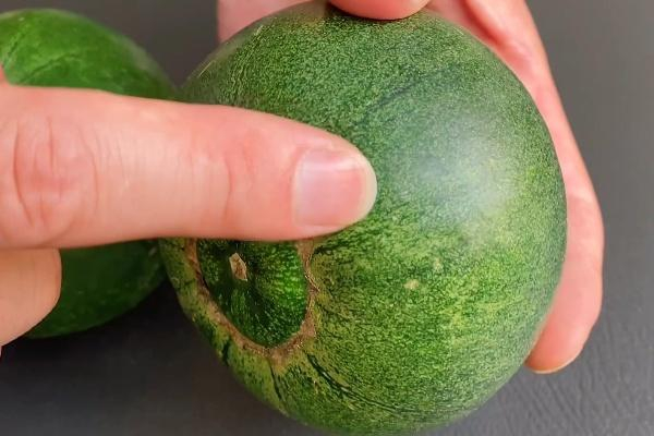 这种按压感应当软硬适中,如果按起来硬邦邦,代表瓜肯定是生的,一定不甜;如果按起来太软,弹性很差,代表瓜有点过熟了。
