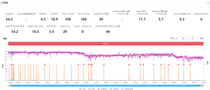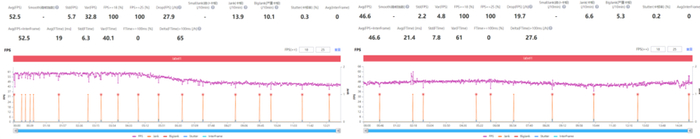 而 vivo X80 则完全是另外一个画风,平均帧数能冲到 54.2 帧,游戏体验非常流畅。