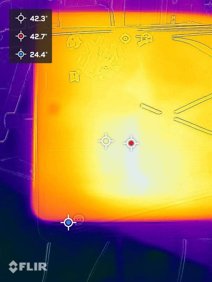 但这样的好处是机身温度比较可观,30 分钟之后最高温度 42 度左右,但托尼觉得实际体感温度要比这个再低一点。