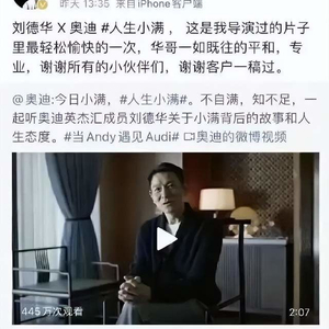 5月21日,中国传统节气“小满”,奥迪汽车借此和刘德华合作拍摄广告片《人生小满》,博得流量、口碑双丰收,可谓赢得“大满”。但随后情况急转直下,博主“北大满哥”在短视频平台控诉,称《人生小满》完全抄袭自己的原创文案。随后,奥迪删除了该广告视频并致歉,刘德华和涉事广告公司上思广告也就此致歉。