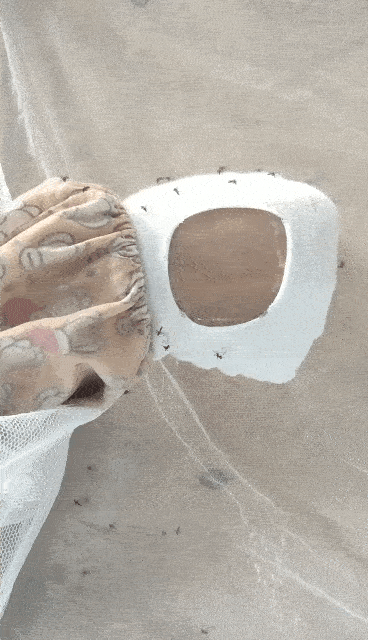 测试人员在肌肤上涂抹驱虫剂,蚊虫真的都“绕道飞”,趋避蚊虫效果肉眼可见。