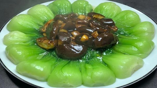 上海青也经常作为浓烈口味的垫菜出现,最典型的当属香菇油菜,浓油赤酱的香菇搭配清爽的青菜,成为完美的互补。