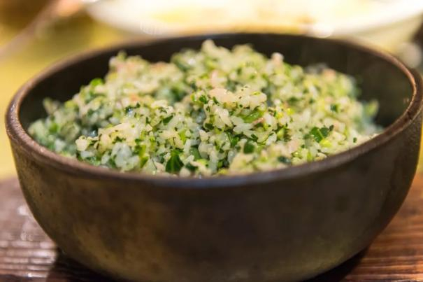 和碳水搭配也是极好的,除了菜粥、香菇青菜包,上海青经常出现的一个场景就是咸肉菜饭。稍加煸炒后的咸肉和大米一起放进锅中,煮熟后倒入超过的青菜,拌匀后再焖一刻钟,这样青菜的颜色还能保持翠绿,最后再拌上一勺猪肉就完美了。