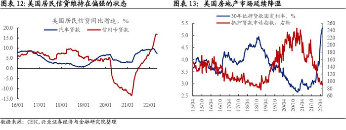 目前货币紧缩和金融条件收紧对美国房地产市场冲击最大,美国居民消费和企业资本开支仍处于高位;