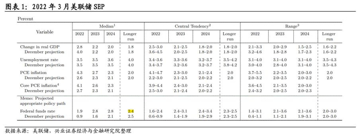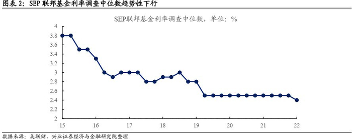 美联储SEP中对长期联邦基金利率的预测是最常被引用的中性利率;