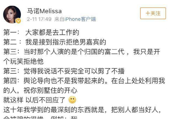 马诺说,节目组觉得她说话不妥可以剪掉不播,舆论导向也不是她一个人带起来的。